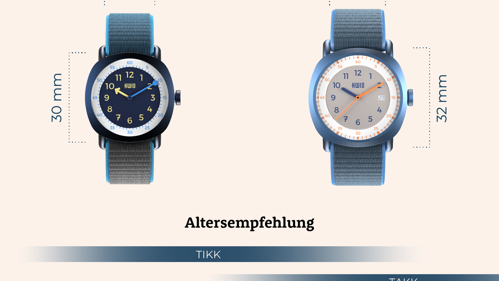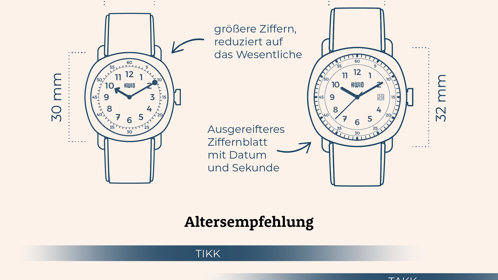 Verschiebe den Regler und entdecke die Unterschiede der Uhren TIKK & TAKK