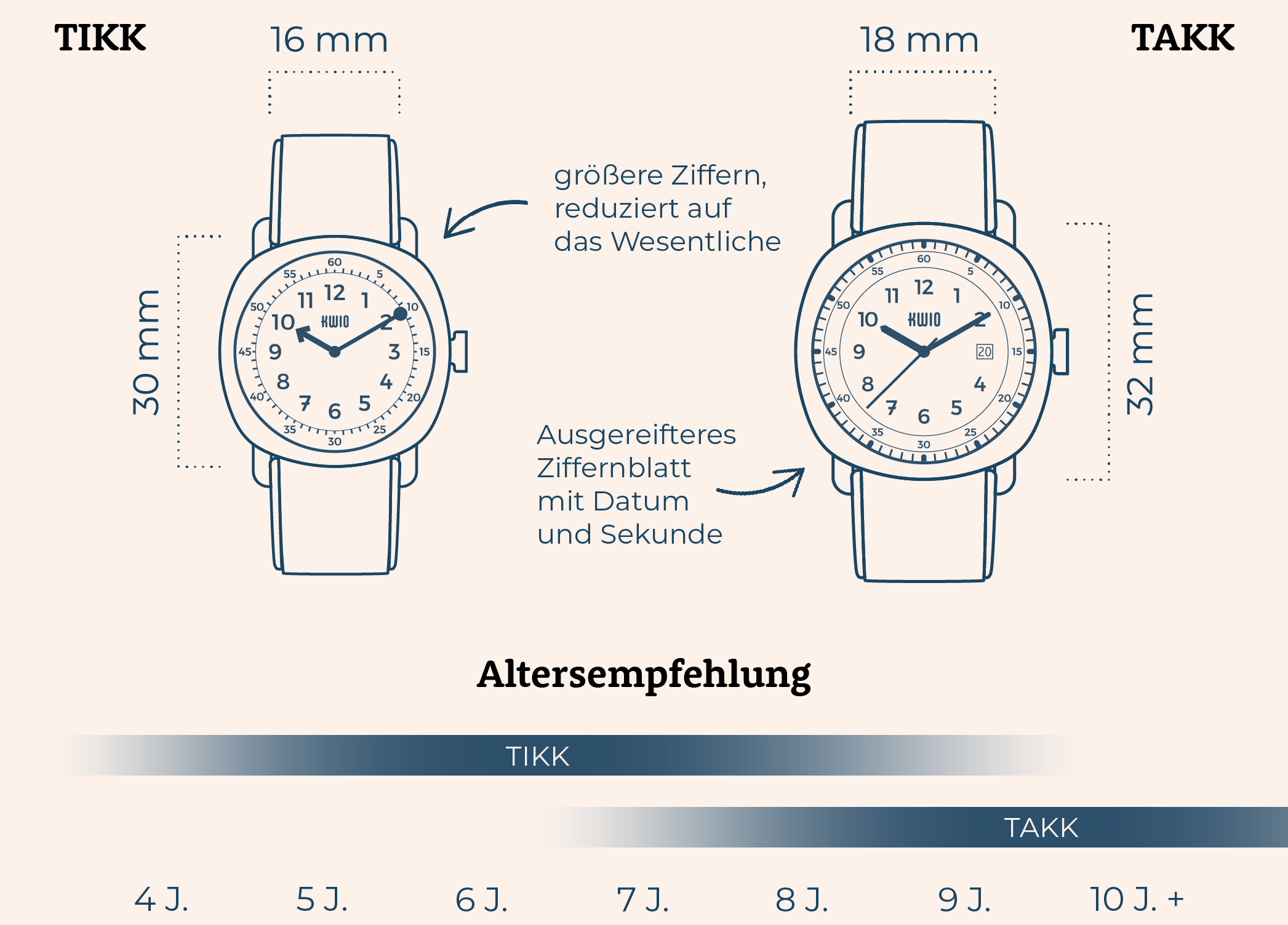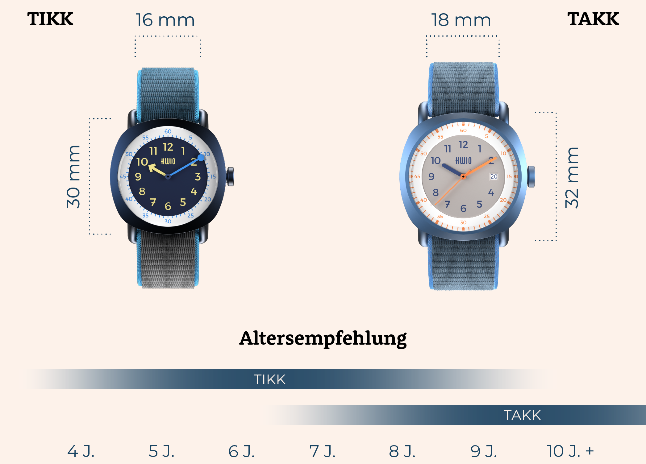 Verschiebe den Regler und entdecke die Unterschiede der Uhren TIKK & TAKK