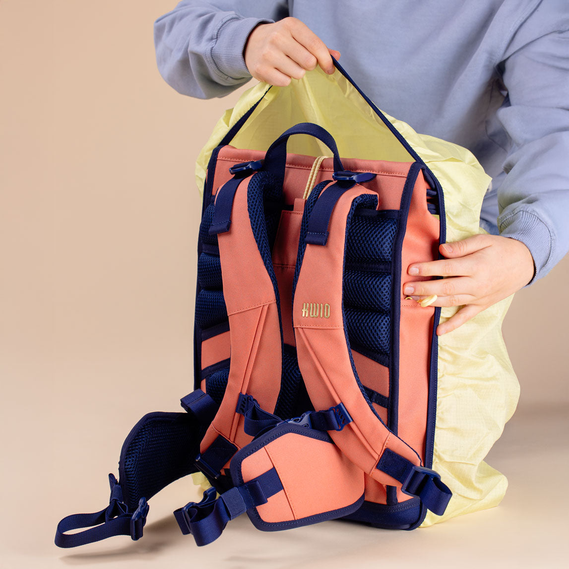 Unser Regencover ist ebenfalls retro-reflektierend beschichtet und in der passenden Farbgebung zum jeweiligen BAGG Modell gehalten. Dadurch ist der Rucksack eurer Kinder nicht nur gut vor Nässe geschützt, sondern weiterhin gut sichtbar.