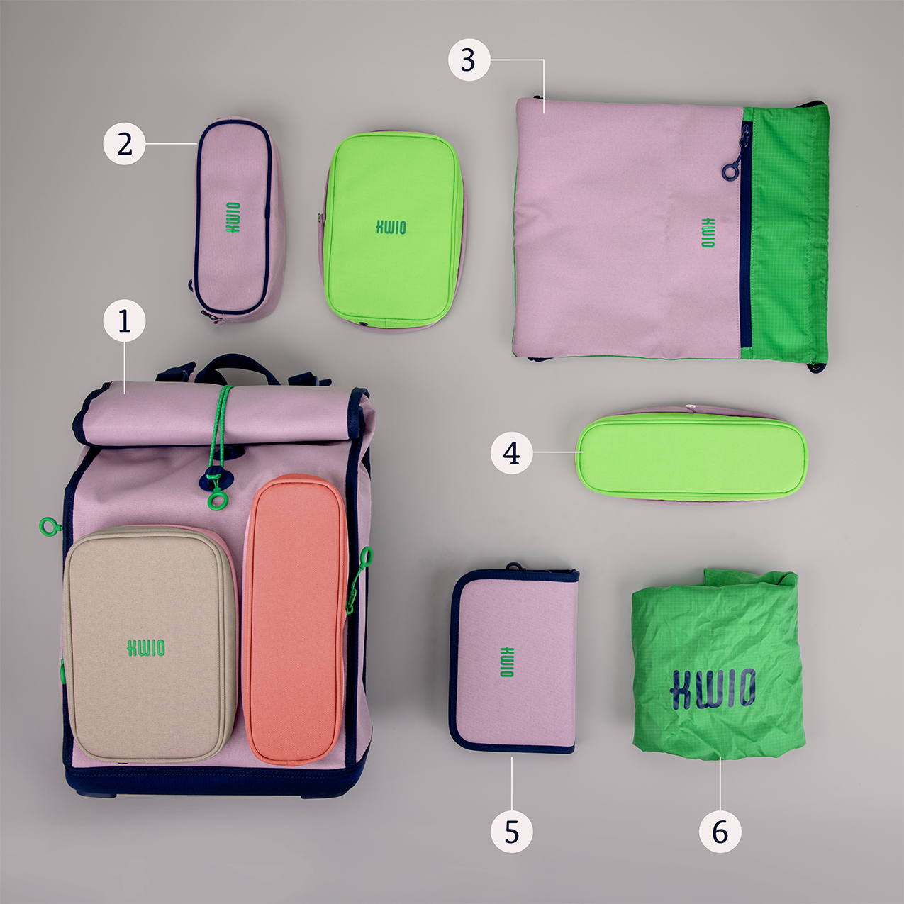Unser Mäppchen ist in derselben Farbgebung gehalten wie der BAGG und hat auch den kinderleichten Verschluss. Es bietet Platz für 12 dünne Buntstifte, 8 dicke Buntstifte, 1 Bleistift, 1 Füller sowie Radiergummi, Anspitzer und Lineal und Stundenplan. Zusätzlich ist es mit einer kleinen abnehmbaren Tasche versehen, welches als Portemonnaie dienen kann.