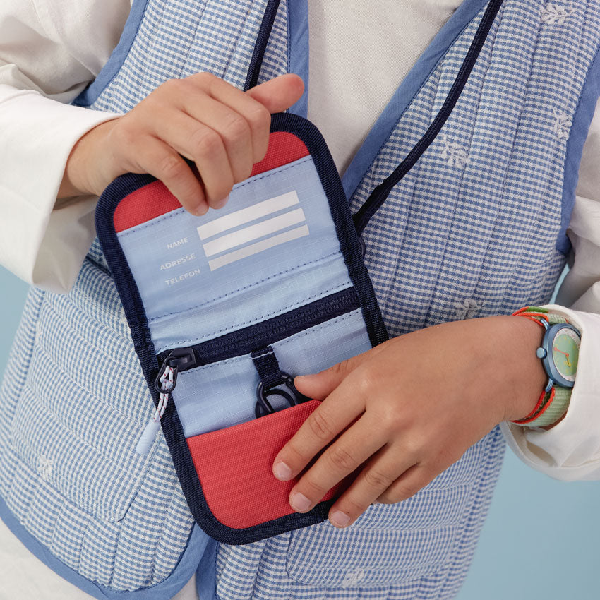 Im Brustbeutel SNAPP steckt clevere Organisation auf kleinstem Raum: Im Inneren befindet sich ein beschreibbares Namensschild und das sichere Geldfach mit Reißverschluss. Der Haustürschlüssel lässt sich an einem stabilen Karabiner mit Schlüsselring anbringen und kann in der kleinen Extratasche verstaut werden. Auf der Rückseite sorgt ein transparentes Fach für schnellen Zugriff auf Fahrkarten oder Ausweise. So ist alles Wichtige gut sortiert und griffbereit.