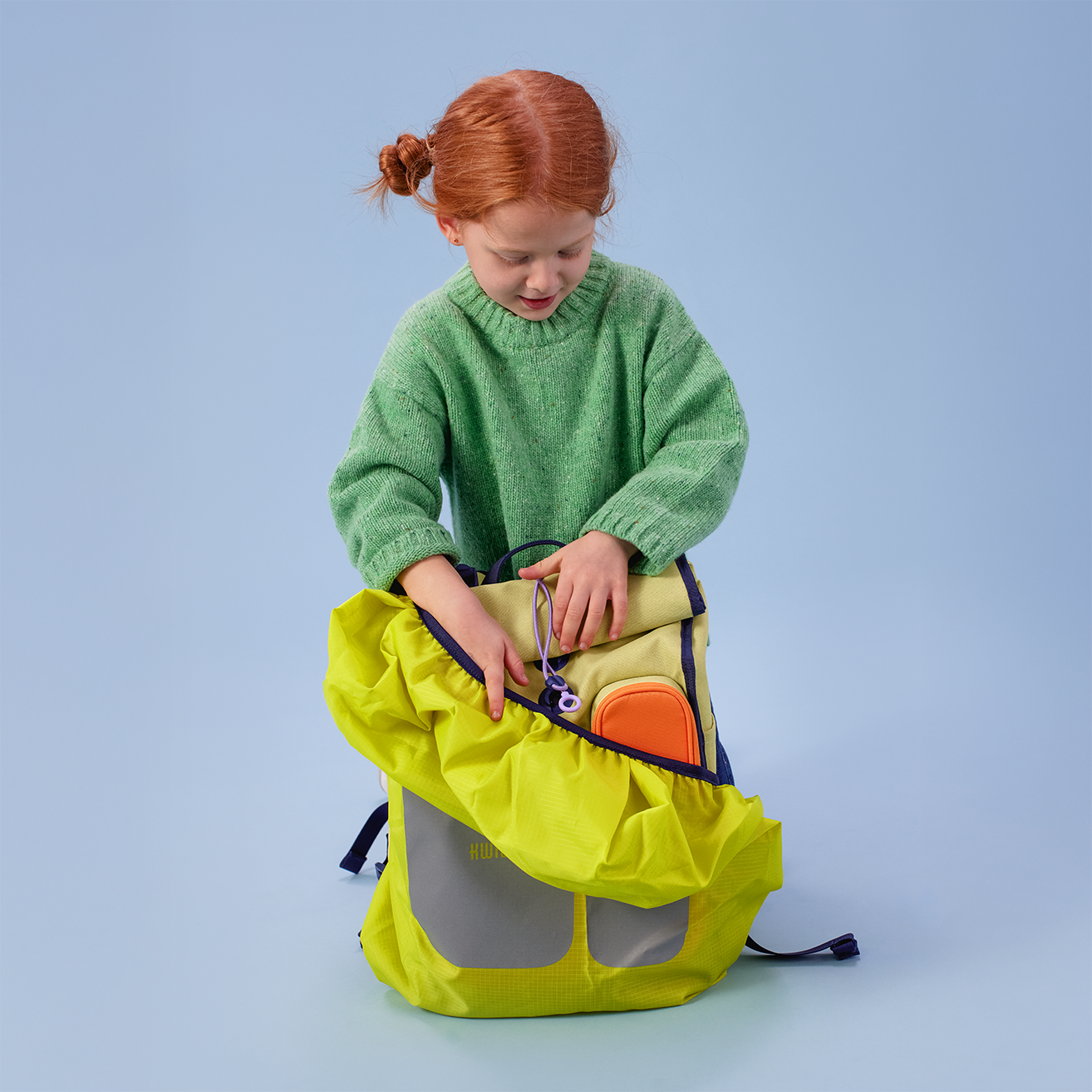 WRAPP hält, was sein Name verspricht: Das Regencover besteht aus recyceltem Polyester mit einer wasser- und schmutzabweisenden Beschichtung. So bleibt der BAGG bei Regen, Spritzwasser und Matsch zuverlässig trocken. Das robuste Material ist langlebig, leicht und schützt den Rucksack – egal, ob auf dem Schulweg, beim Radfahren oder auf dem Spielplatz.